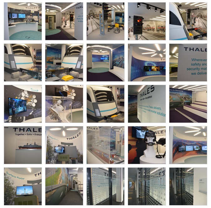 Spezifische Themeninseln zu den Bereichen Luft- und Raumfahrt, Cyber, Leitstellen und Transportation sowie eine dezidierte Themeninsel „Innovation“ mit wechselnden Highlights haben hier ihren Platz. Optisches Herzstück bildet ein als moderner Bahnhof gestalteter Bereich mit Feldelementen, Gleisen und einer begehbaren Triebwagenkabine. Christopher Bach, Leiter der Unternehmenskommunikation von Thales Deutschland, zur Zielsetzung:
