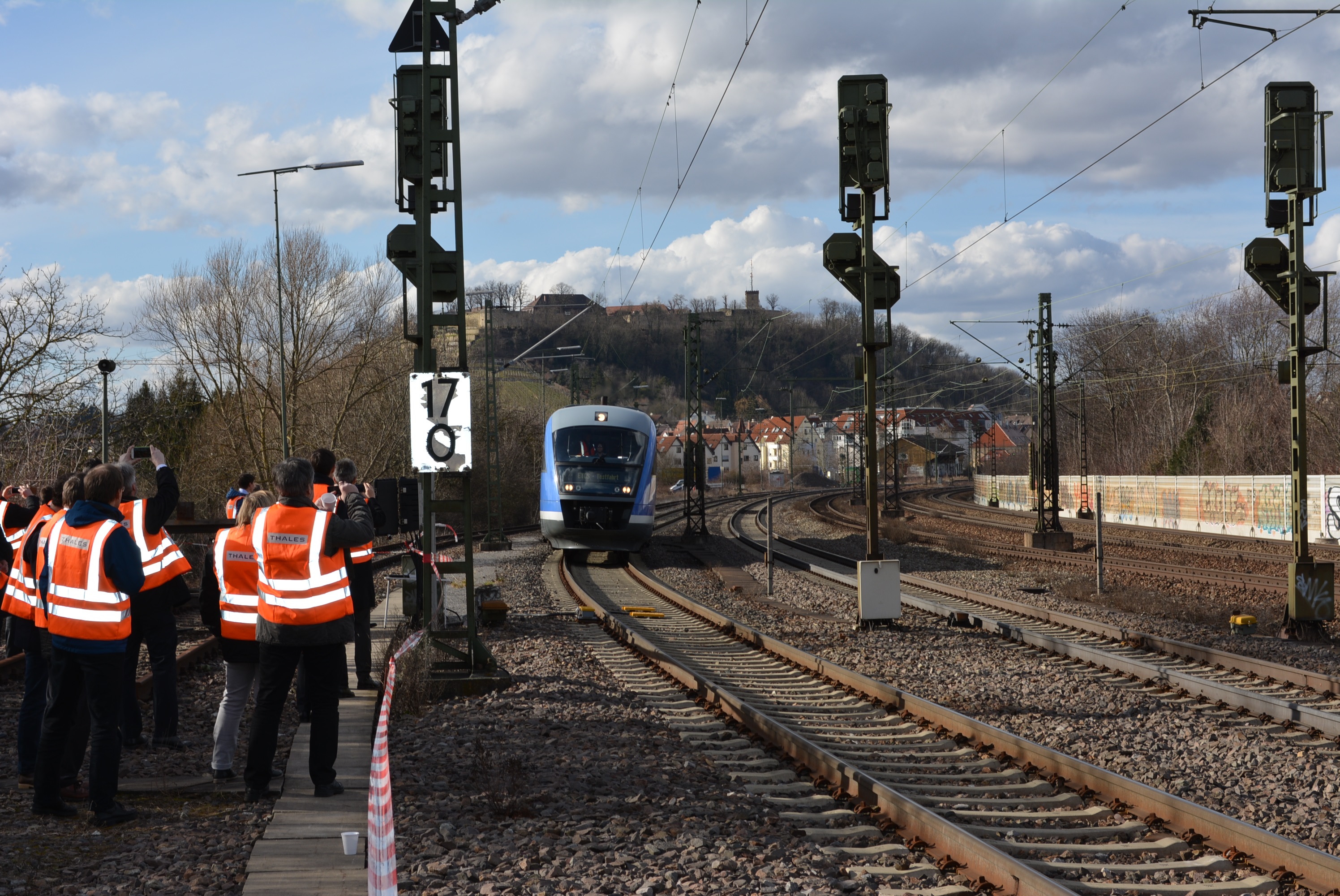 Zum Abschluss des ERTMS/ETCS-Symposiums fand eine Testfahrt mit einem Siemens Desiro Triebwagen zwischen Ludwigsburg und Bietigheim statt. Dabei konnte die Funktionalität der ETCS Level 1 Limited Supervision-Funktion nachgewiesen werden. Auf der stark befahrenen viergleisigen Strecke von Ludwigsburg nach Bietigheim passieren täglich circa 250 Züge das mit ETCS L1LS ausgerüstete Einfahrsignal P302 in Asperg. Ziel des Entwicklungsvorhabens ist es eine Zulassung für das System der PZB LEU von Thales Deutschland zu erlangen.