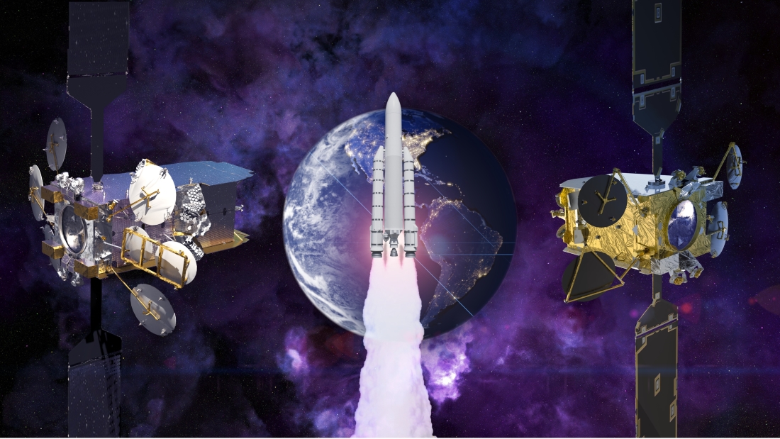 - 2 geostationary telecom satellites: SES 17 and Syracuse 4A, built by Thales Alenia Space as prime contractor for SES and the French Ministry of the Armed Forces, respectively. Both use the Spacebus NEO platform with all-electric propulsion.