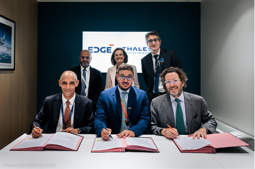 The MoU was signed by Dr. Chaouki Kasmi, President of Technology and Innovation at EDGE, Alexis Morel, Vice-President of the Optronics and Missile Electronics activities at Thales, and Abdelhafid Mordi, Chief Executive Officer of Thales in the UAE. The signing ceremony was witnessed by Hamad Al Marar, Managing Director and CEO of EDGE, Patrice Caine, Chairman and CEO of Thales Group, and Pascale Sourisse, President of Thales International.