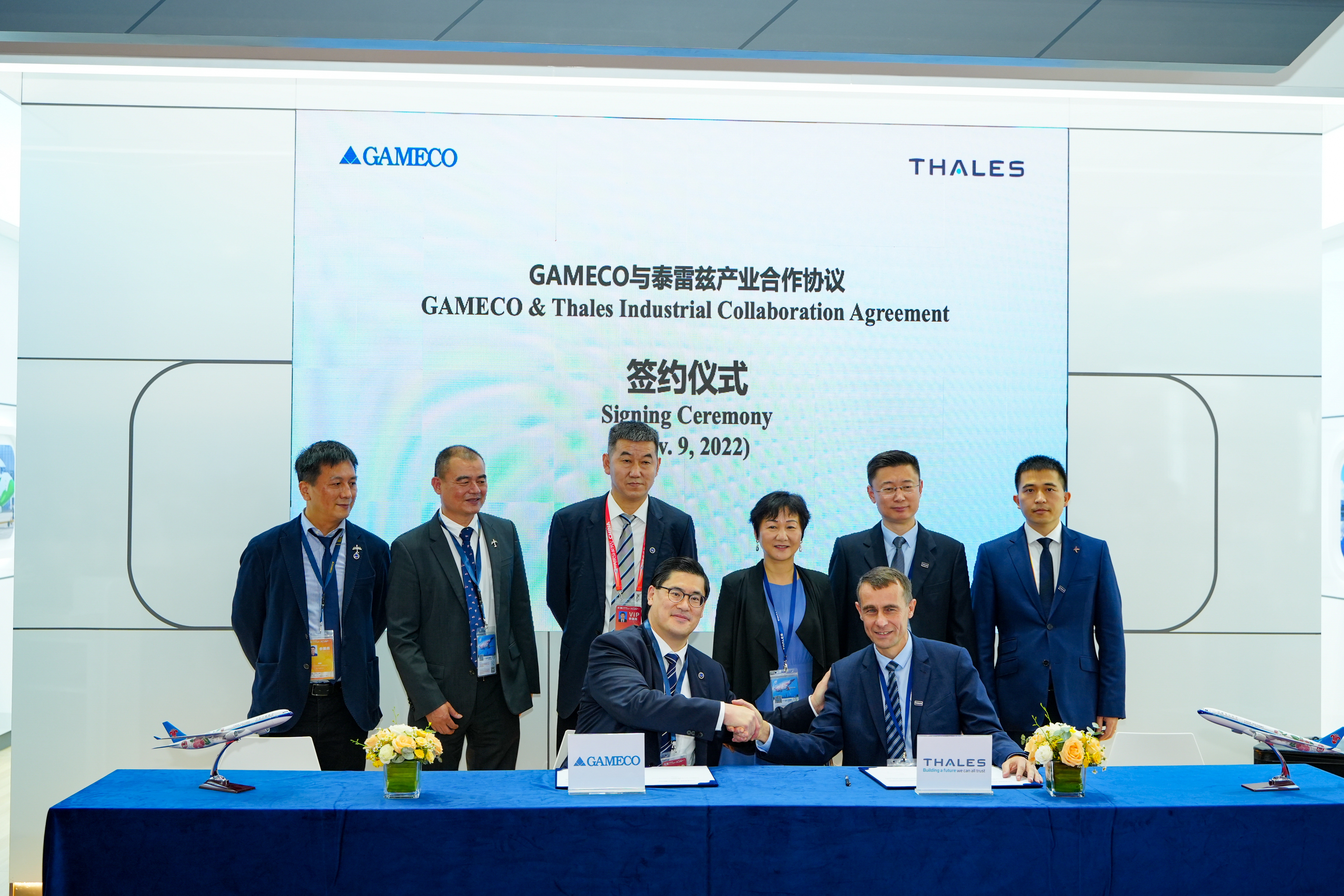 At the 14th Airshow China in Zhuhai, Guangzhou Aircraft Maintenance Engineering Co., Ltd. (GAMECO) and Thales signed an industrial collaboration agreement to expand their MRO cooperation on November 9th, 2022.