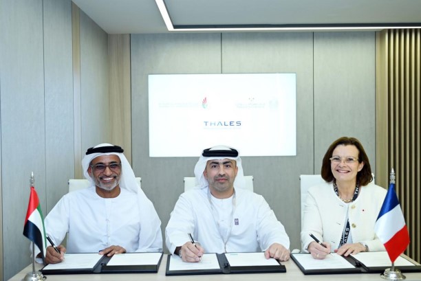 The MoU was signed by H.E. Saif Mohammed Al Suwaidi, Director General of the GCCA, Shareef Hashim Al Hashmi, CEO of Operations at Tawazun Council and Pascale Sourisse President and CEO Of Thales International on the sideline of Dubai Airshow 2023.