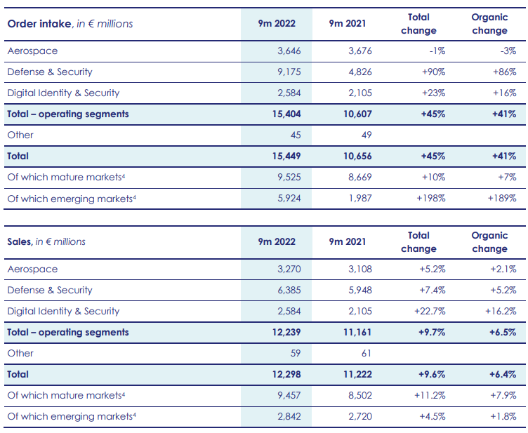 Thales (Euronext Paris: HO) reported today its order intake and sales for the period ending 30 September 2022.