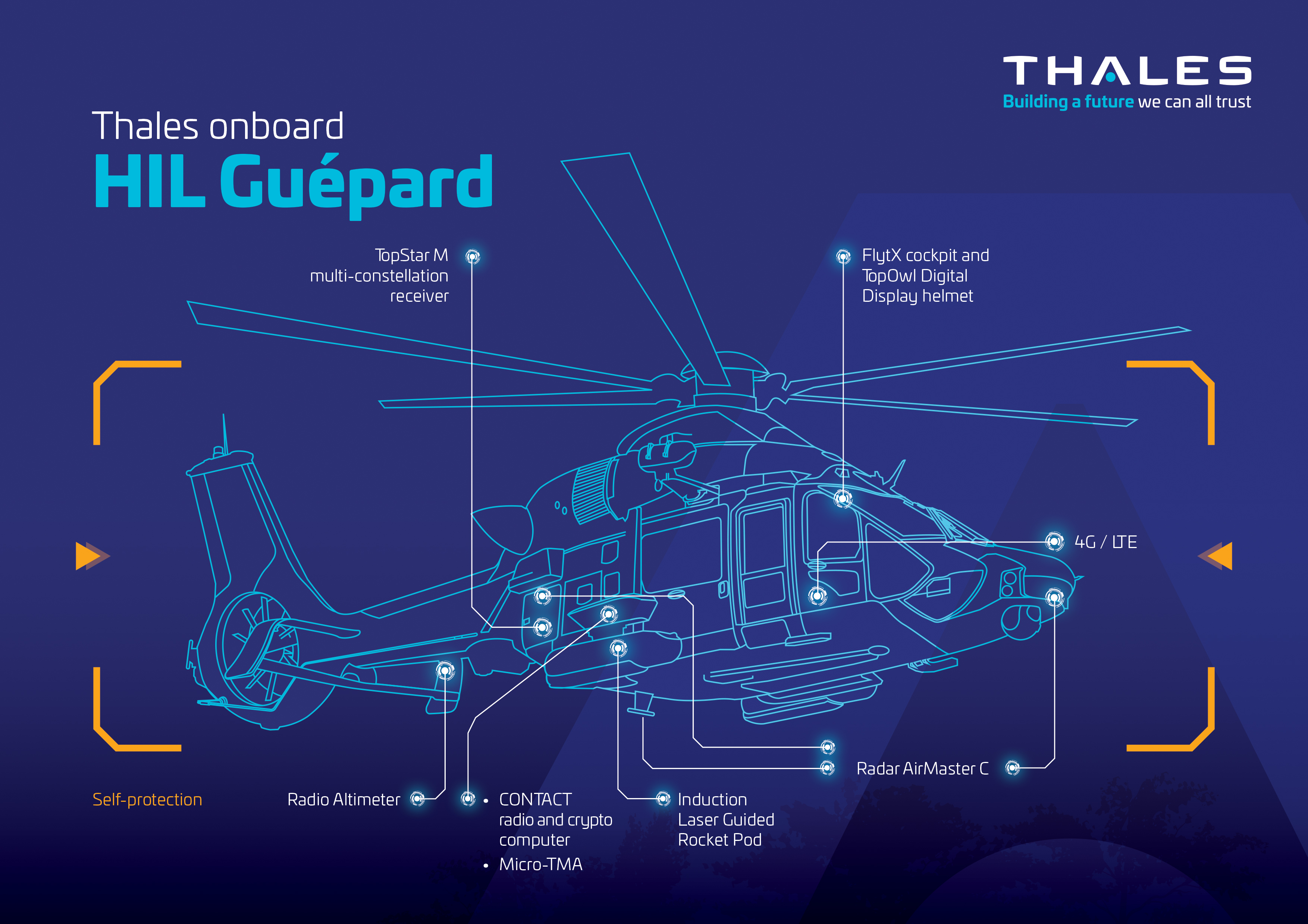 The Thales technologies selected by Airbus Helicopters, industrial prime contractor for the programme, and the French defence procurement agency (DGA), the contracting authority, will provide the 169 Guépard joint light helicopters with a complete set of high-performance solutions relying on innovative connected touchscreen interfaces for all three branches of the armed forces from 2027.