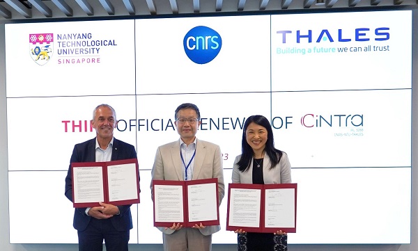 • The CNRS International – NTU – Thales Research Alliance (CINTRA) laboratory is renewed for its fourth tenure, entering its 15th year of strong partnership between CNRS, NTU and Thales since its inception in 2009.