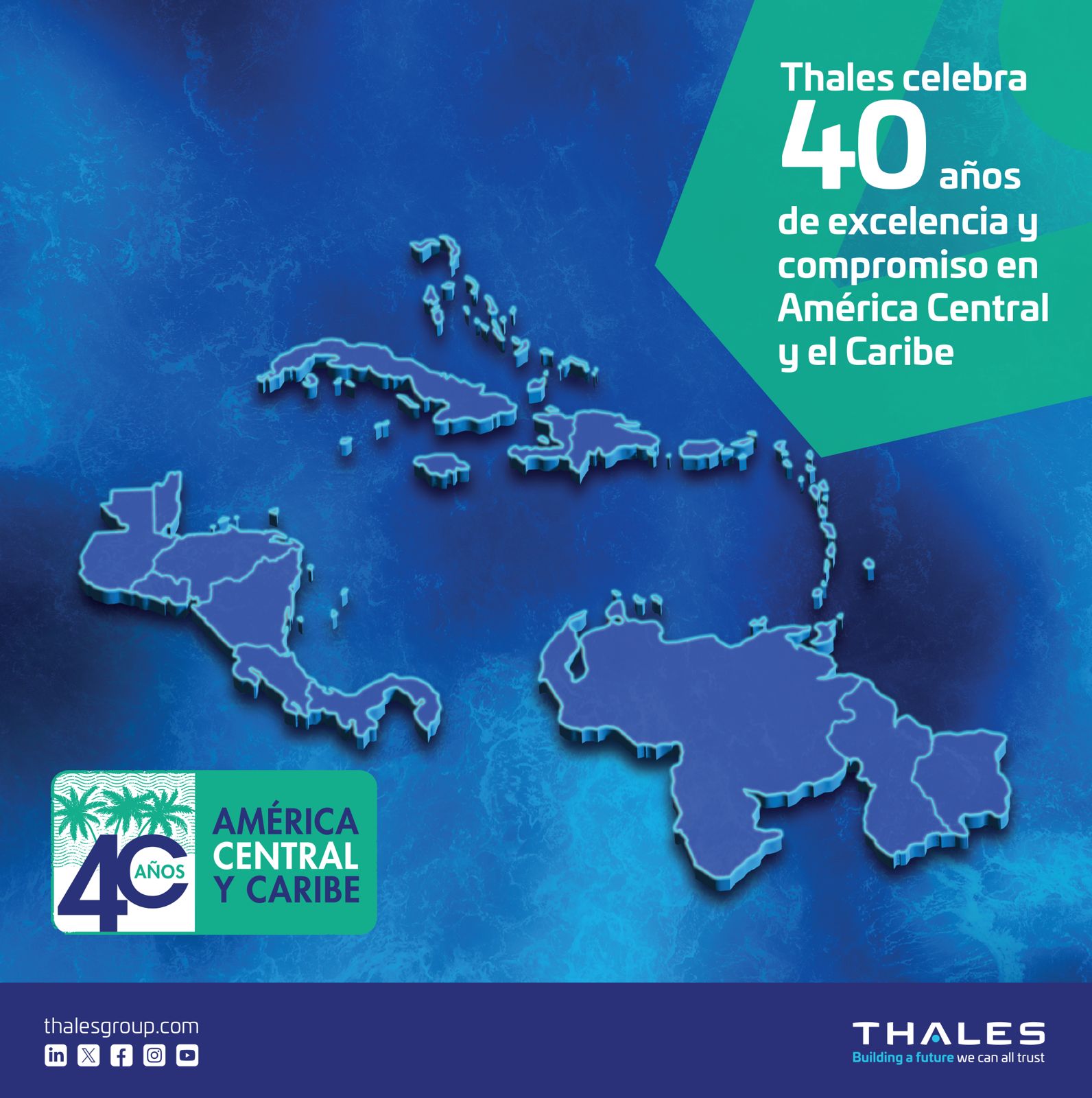 Thales, líder global en tecnología, se enorgullece de celebrar 40 años de presencia en América Central y El Caribe. Desde su llegada a la región, Thales ha estado contribuyendo al desarrollo de los sectores claves como Defensa, Aeroespacio, Ciberseguridad y Digital desde 1985 hasta hoy y continúa apoyando a todos sus clientes, como entidades gubernamentales, instituciones privadas y ciudades.