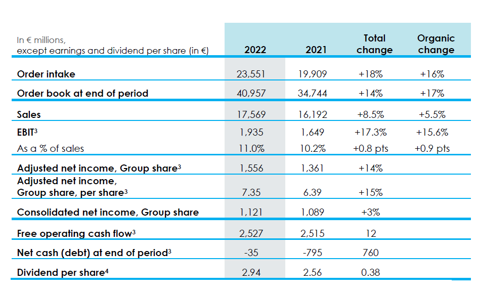 • Order intake: €23.6 billion, up 18% (+16% on an organic basis2)