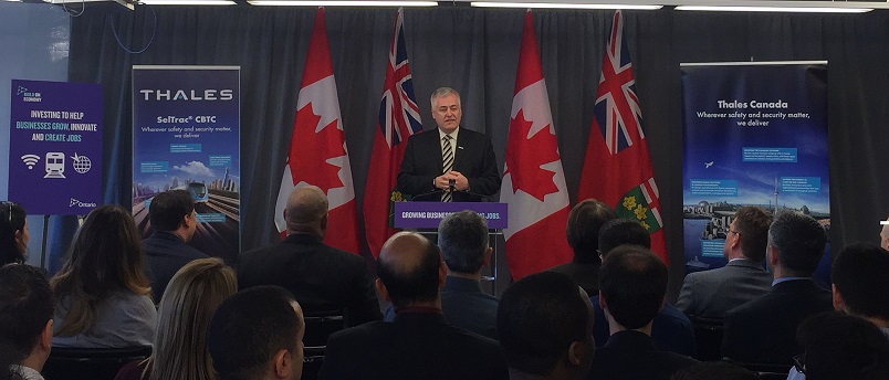 L’Ontario collabore avec Thales au Canada pour développer la prochaine génération de solutions de signalisation ferroviaire qui permettront d’améliorer la sécurité et l’efficacité du transport en commun et de créer des emplois.