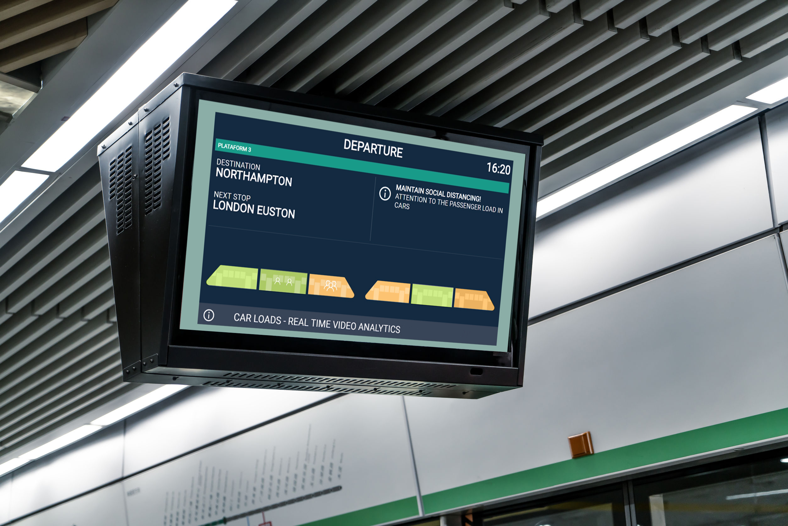 La solution DIVA de Thales utilise les caméras de vidéoprotection déjà présentes sur les quais et dans les trains pour mesurer la densité de la foule. Aucun capteur supplémentaire n’est nécessaire. La densité de voyageurs est calculée en temps réel grâce à l’analyse vidéo, et les écrans d’affichage des quais indiquent aux voyageurs les voitures du train à l’approche qui sont saturées et celles où il y reste de la place (à l’aide d’un code couleur – rouge, jaune et vert – correspondant aux niveaux de densité).