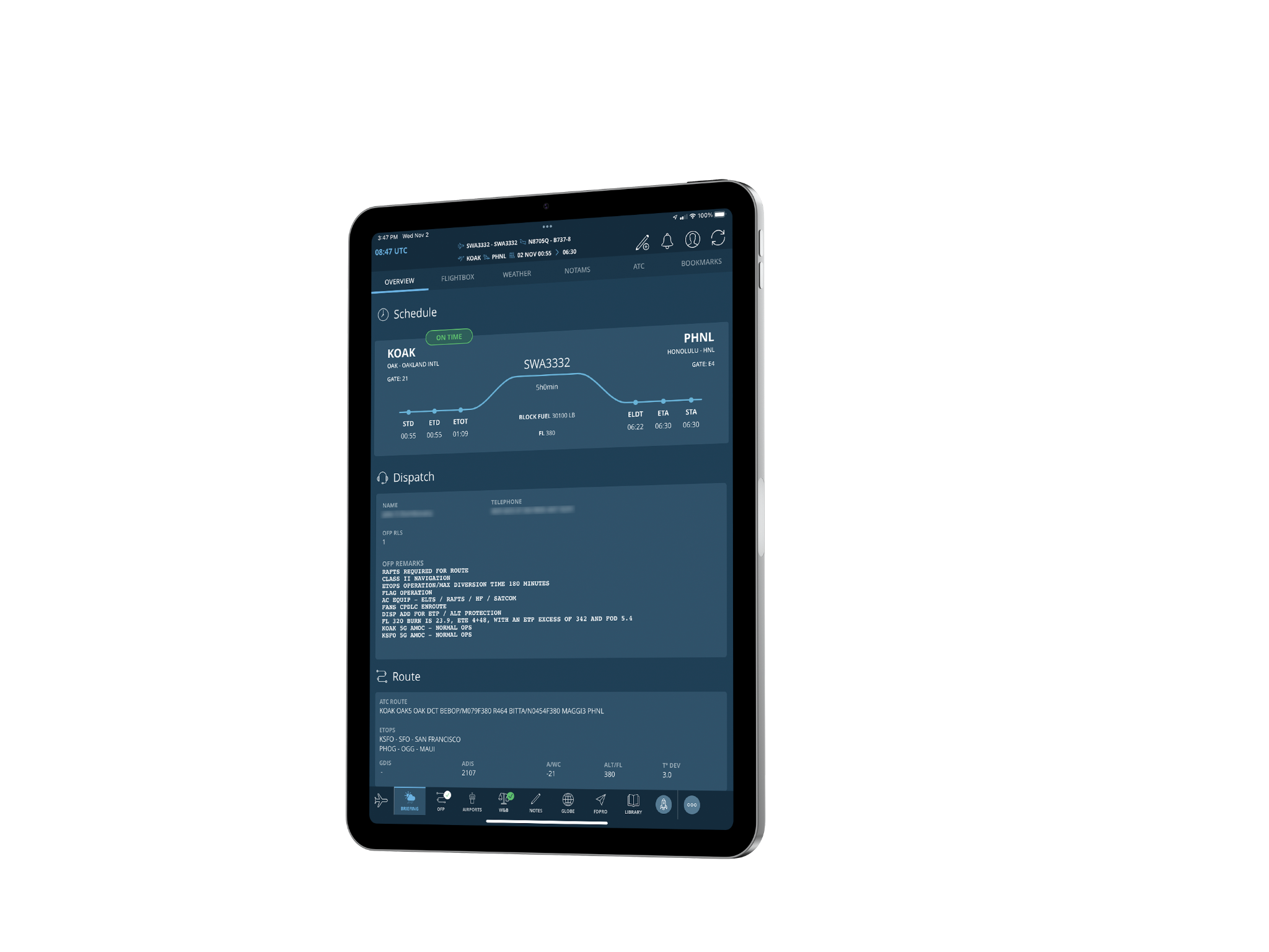 ©ThalesLe contrat pluriannuel conclu avec AvioBook permet à Southwest de disposer de la plate-forme technologique la plus innovante du marché. L'accord comprend la seule solution entièrement intégrée sur le marché de sacoche de vol électronique (Electronic Flight Bag) et de carnet de bord électronique (electronic Logbook) permettant d'améliorer l'efficacité de l'ensemble des opérations aériennes. Southwest a également signé un accord pour équiper la plus grande flotte de Boeing 737 NG du monde d’un interface aéronautique (Aircraft Interface Device - AID) AvioCast. Une fois installé, cette solution fournira des données en temps réel sur les avions aux divers opérateurs. La suite complète de logiciels et de matériel d'AvioBook est conçue pour réduire plus encore les risques de sécurité, améliorer la conformité, ajouter de la redondance et de la résilience technologiques, accroître la durabilité environnementale, tout en offrant des temps d'exécution plus courts.