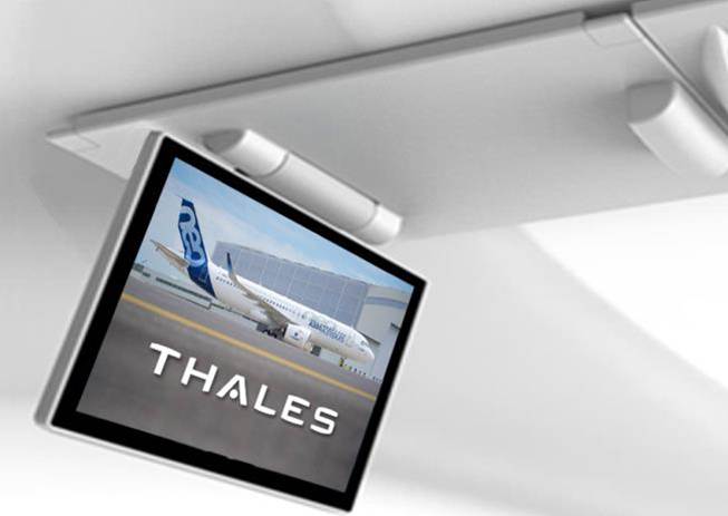 - 2015年9月,中电科泰雷兹航空电子有限公司为首台交付的机载娱乐产品举行了下线仪式。首次交付的产品是全新设计的12英寸可收放的吊挂显示器,主要用于为空客A320飞机客舱中提供娱乐以及信息通告服务。